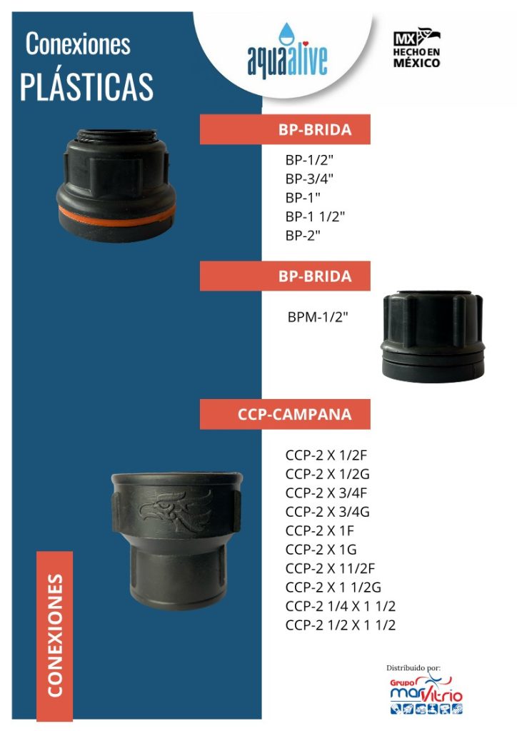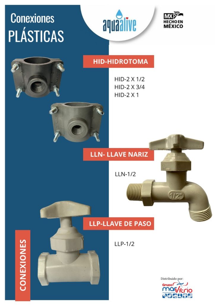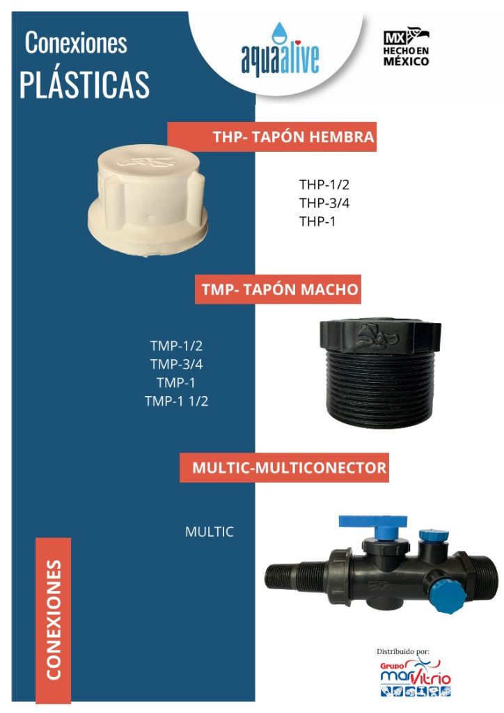 Las Conexiones Plásticas de la línea AQUA ALIVE están diseñadas para garantizar un ensamblaje eficiente, seguro y duradero en sistemas hidráulicos. Fabricadas con materiales de alta calidad, ofrecen resistencia a la presión, a la corrosión y al desgaste, asegurando una larga vida útil y un rendimiento confiable en instalaciones de agua potable, riego y drenaje.