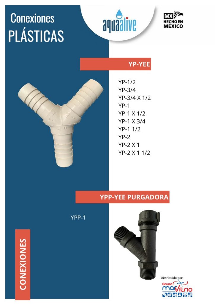 - Características: Conexión de plástico en Y para unir tres tuberías.